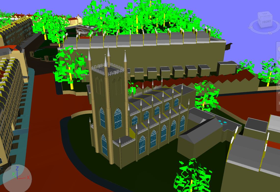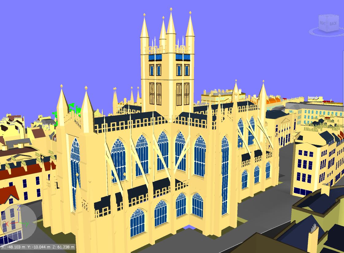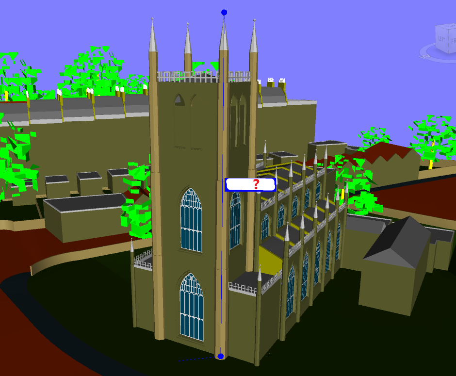 4. Using Review tools, measure the height of the abbey and church towers from the top to the ground (see picture below). Update viewpoints with newly created viewpoints.